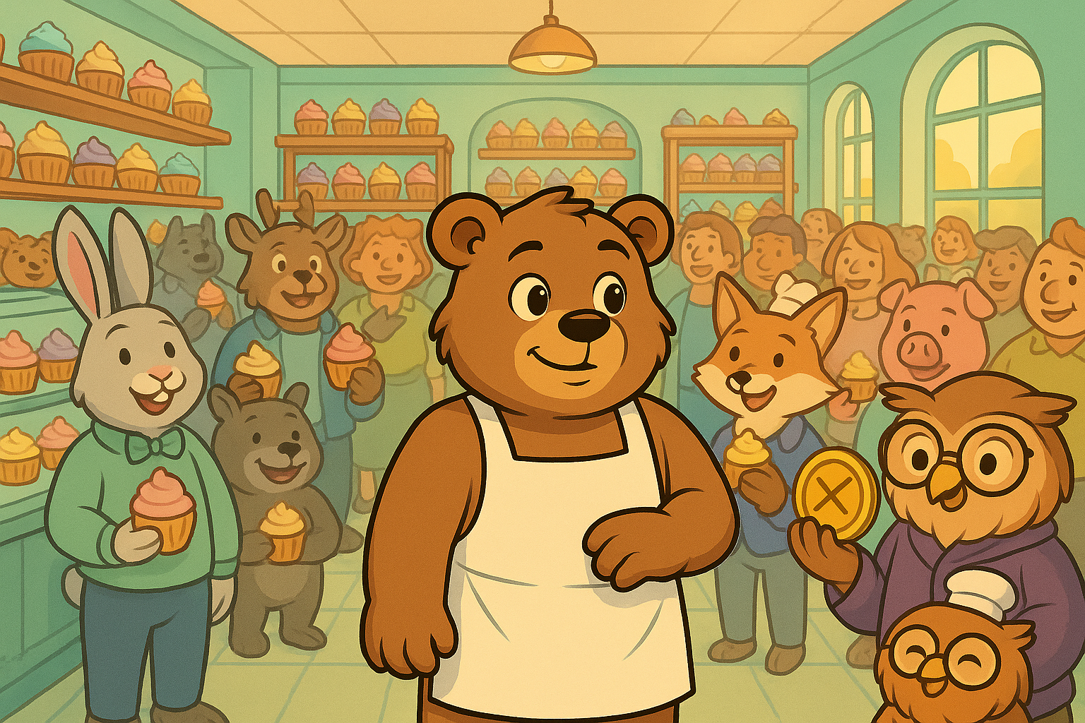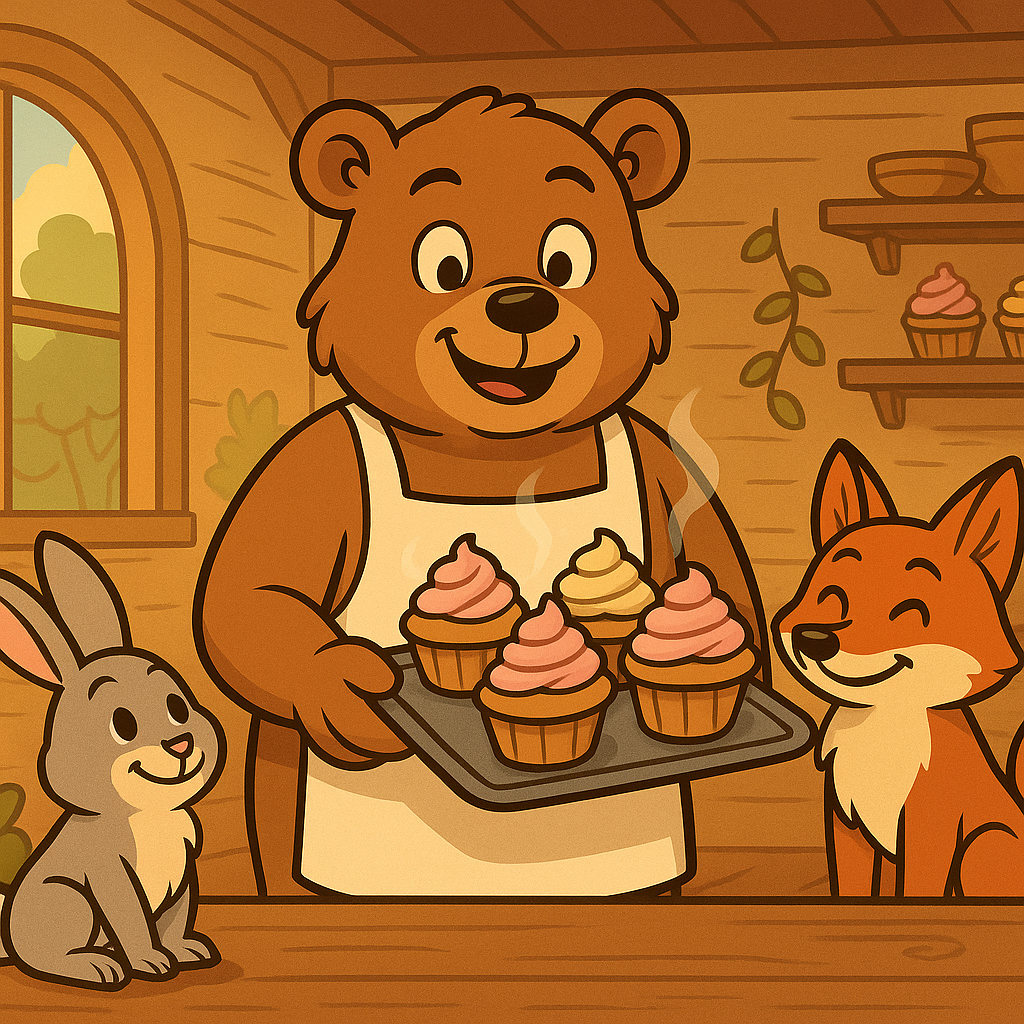 Word had spread that Sugar Bear made the best cupcakes in the entire forest, drawing curious creatures from far and wide.